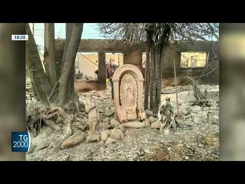 Incendi in California, le storie delle persone. Come quella di questa famiglia che con la casa distrutta prega la madonna sui detriti Servizio di Raffaella Frullone