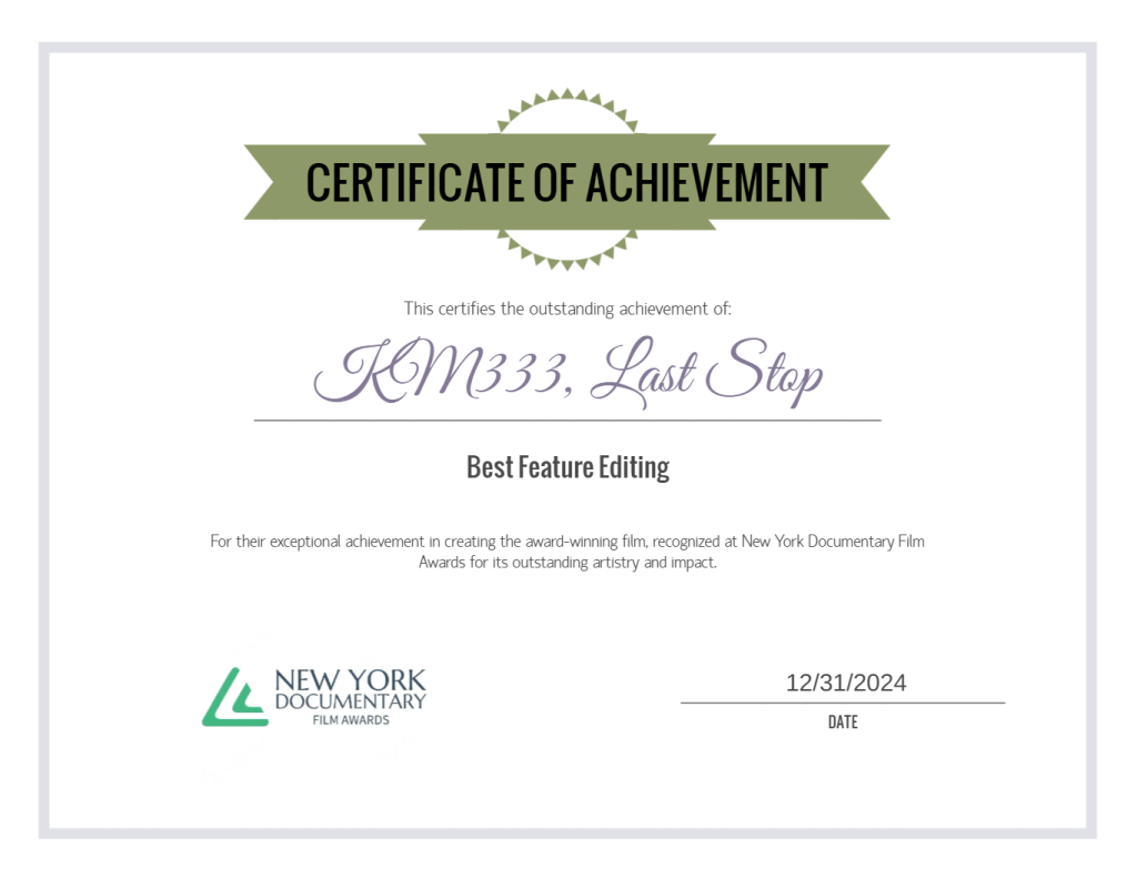 ‘Km333, ultima fermata’ vince premio ‘New York Documentary Film Awards’